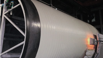罐體碰焊就是用PPH螺旋擠出纏繞機組使PPH顆粒料加工成罐體成型的工藝。系統采用將PPH顆粒熱熔后擠出后再鋼制模具上纏繞成罐體的工藝。